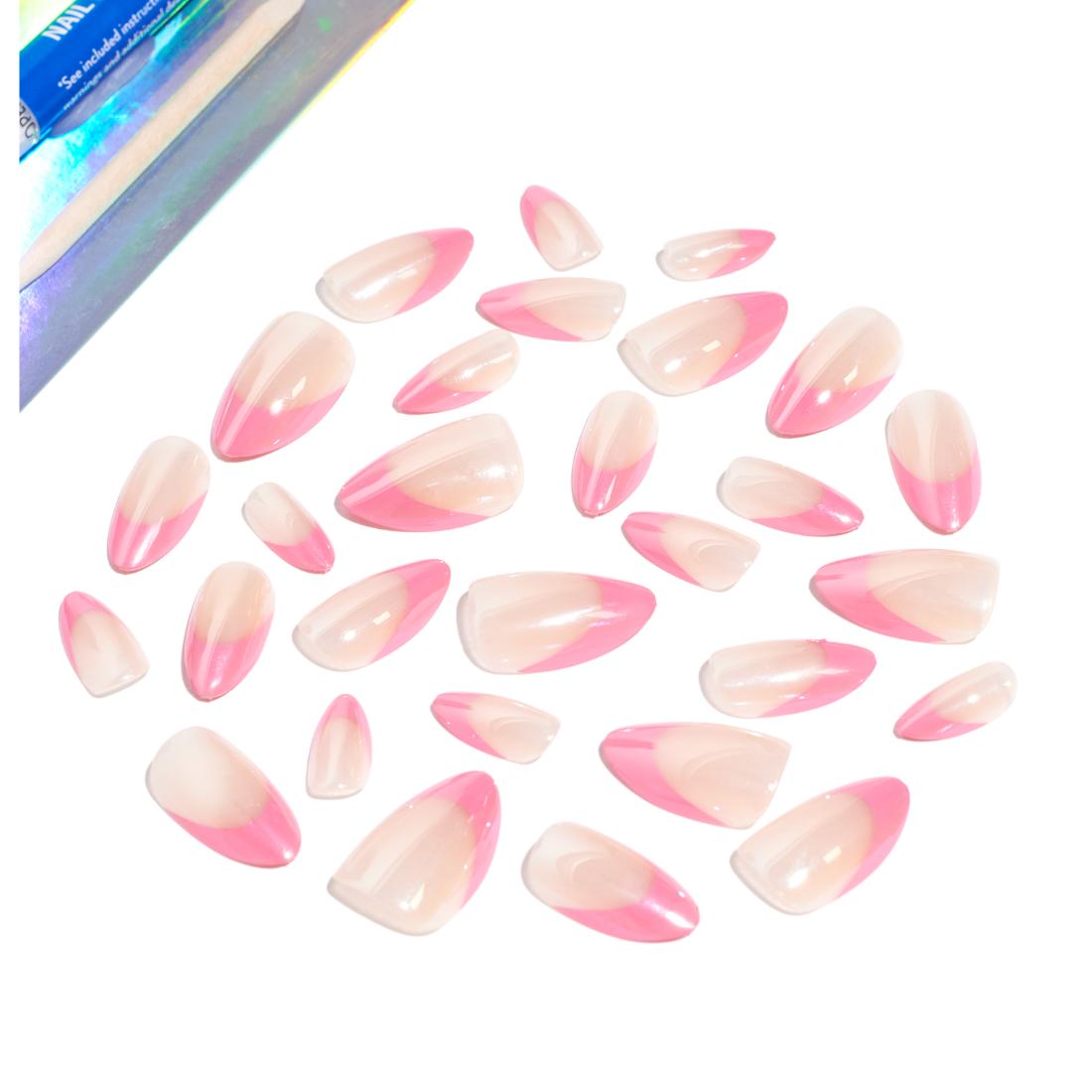 A pale pink French tip over chrome—subtle, sleek, and ballet-core chic.