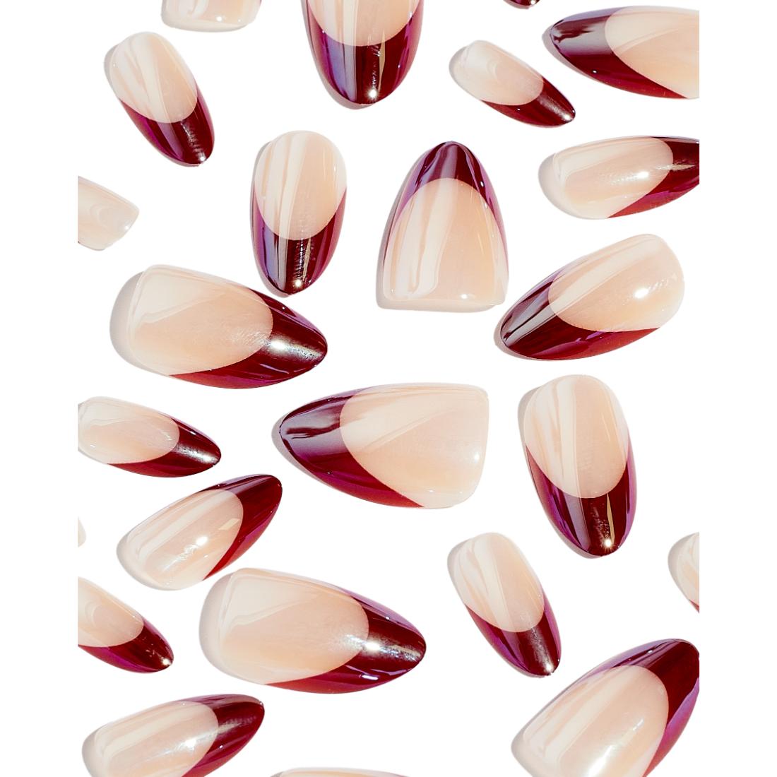 A wine-red French tip with a metallic base—sophisticated, sultry, and slightly indulgent.
