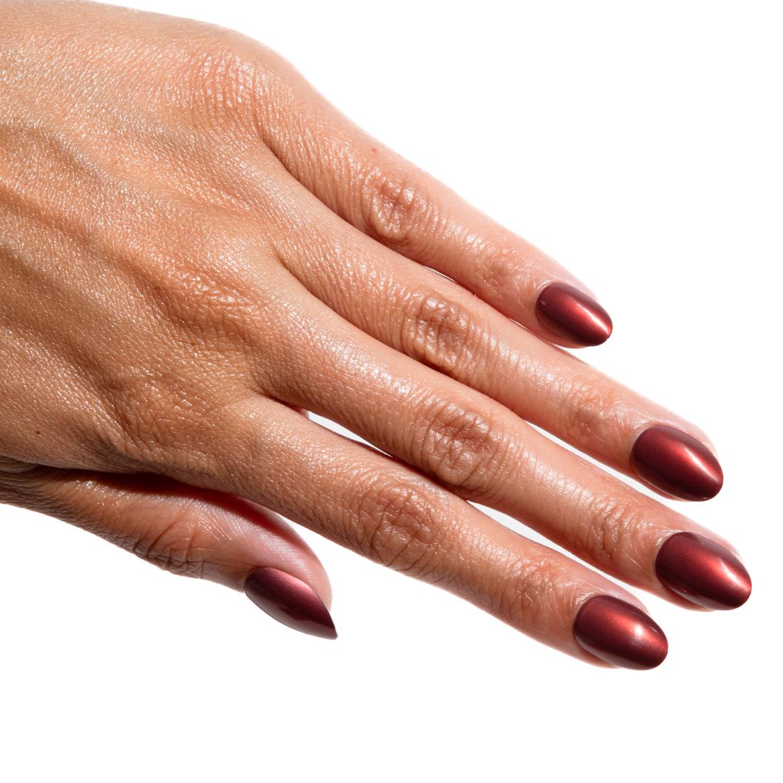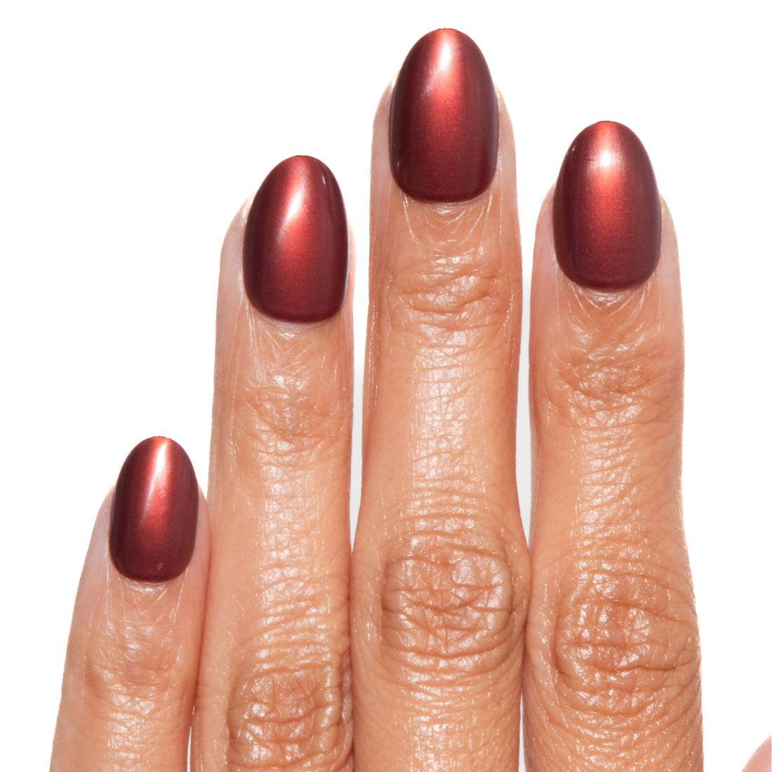Deep, shimmery wine red with a sultry finish that steals the spotlight.