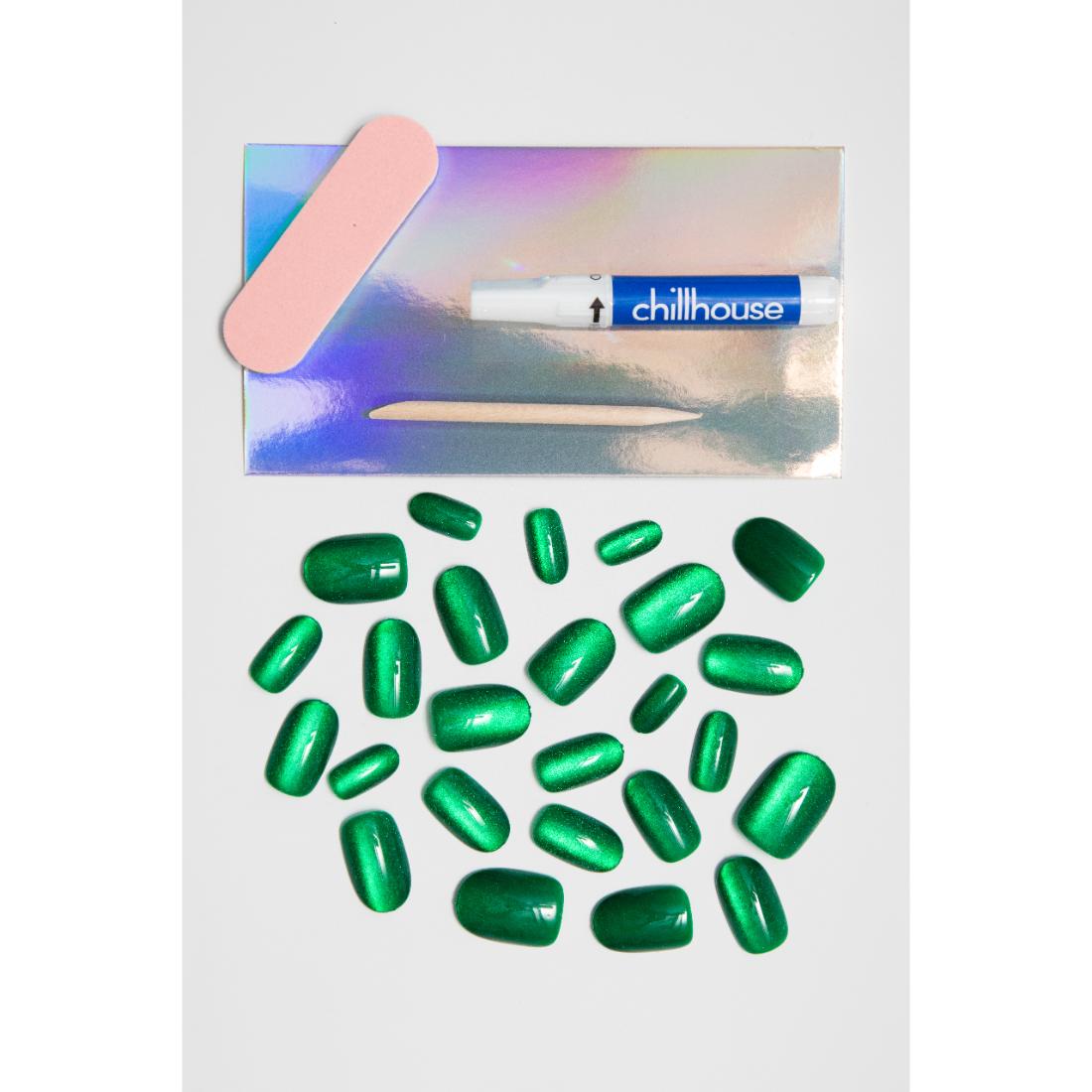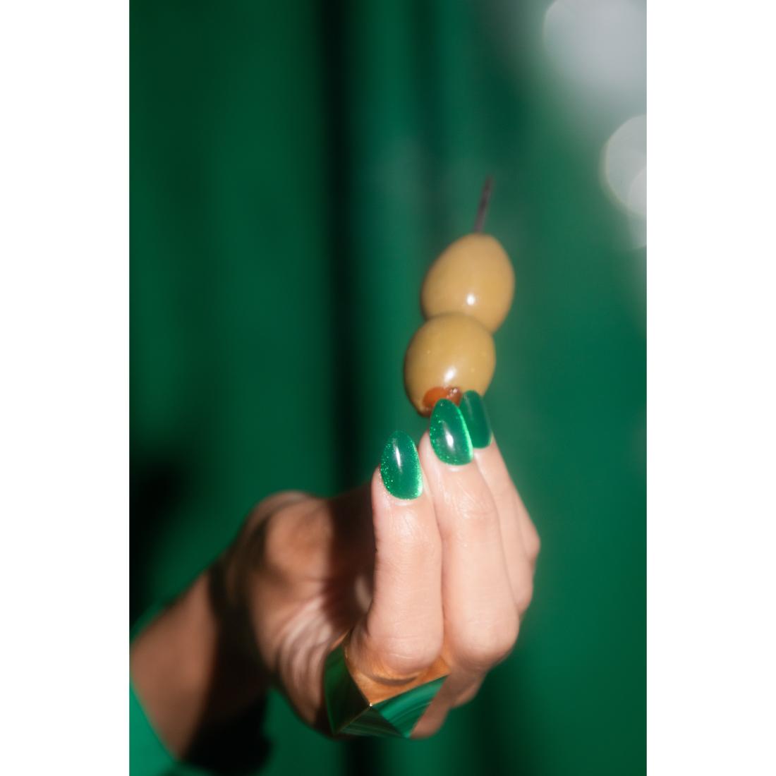 Rule every room with Emerald Tower an almond-shaped, shimmery green nail made for power moves.