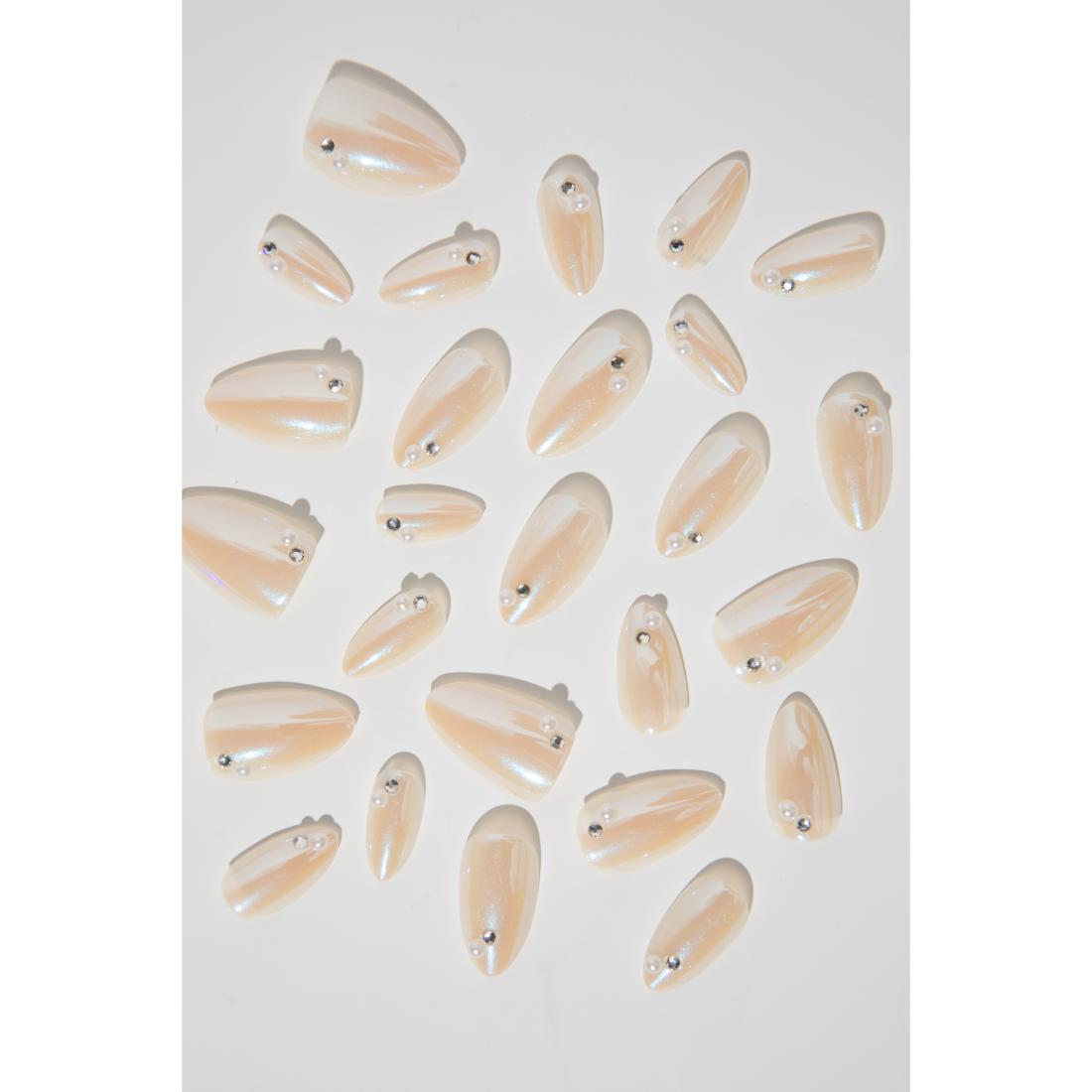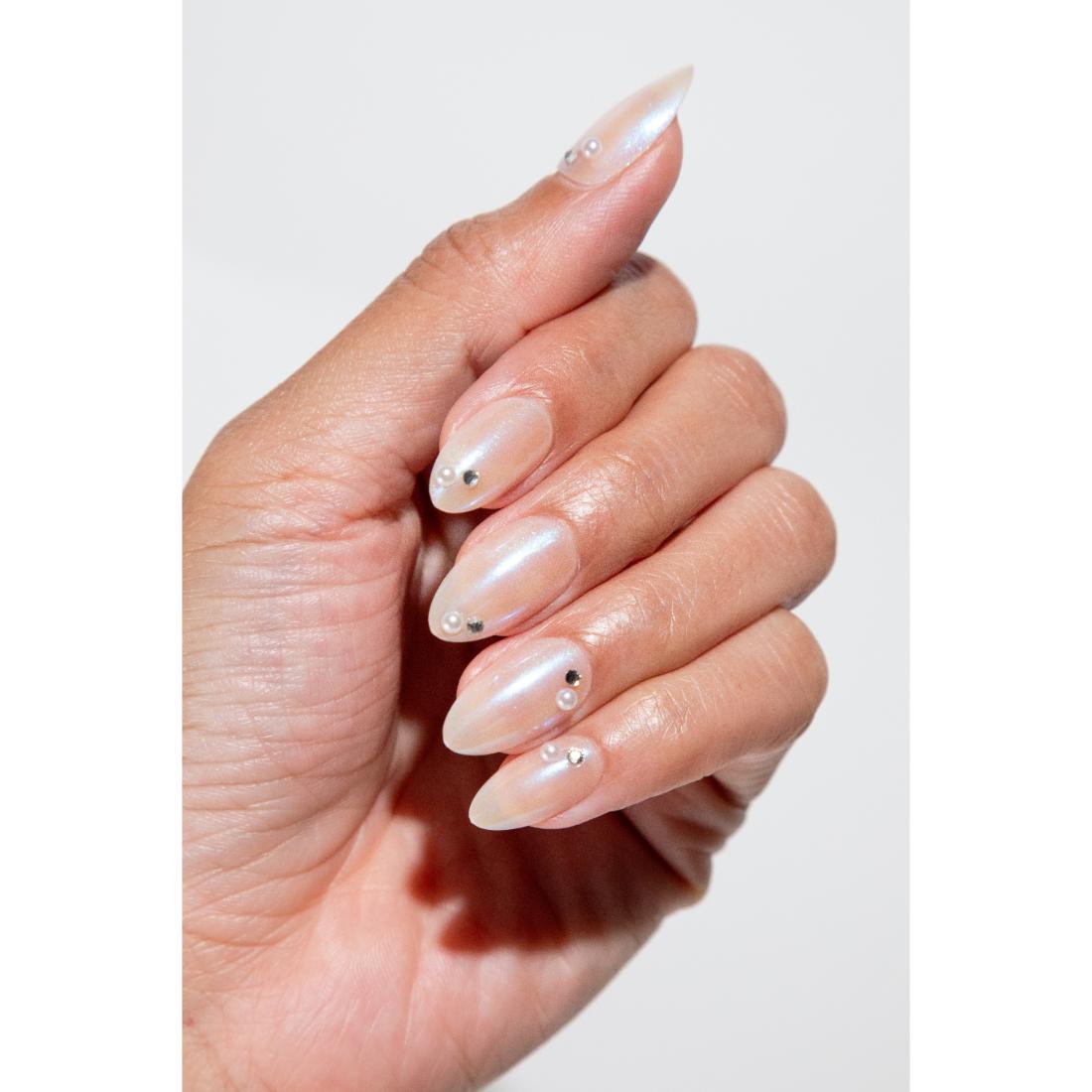 Slip into elegance with Glass Castle—natural nails, subtle shimmer, and enchanted embellishments.
