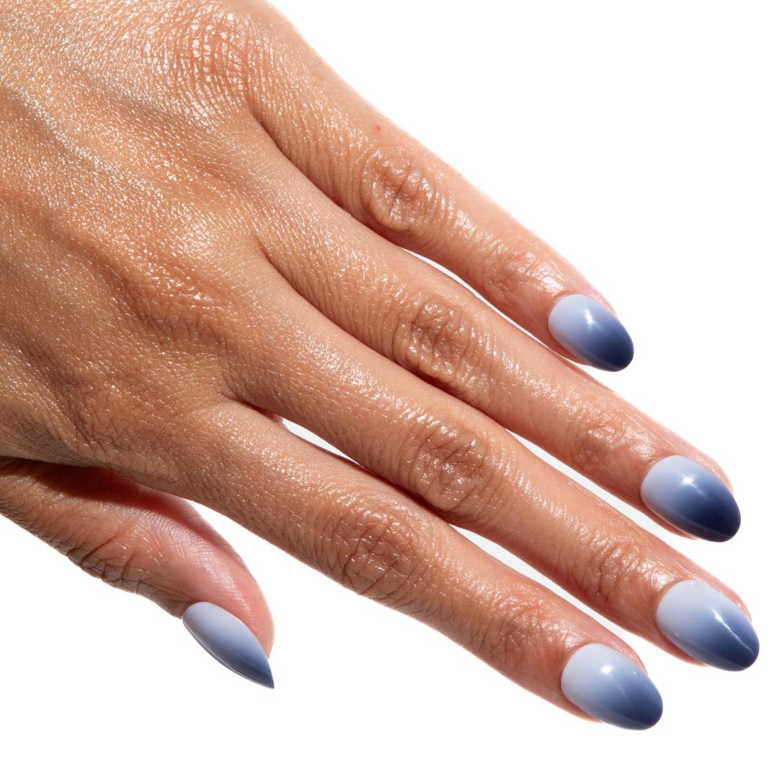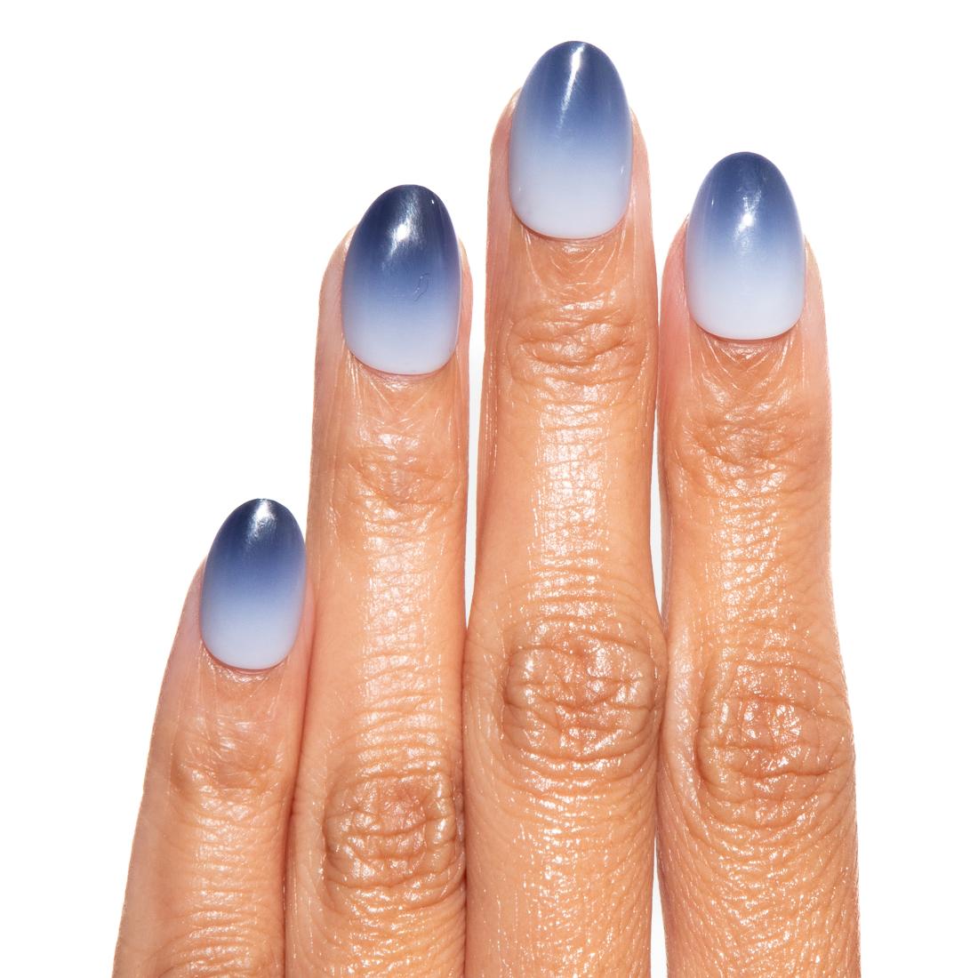 Cool as ice. A white-to-blue ombré that feels fresh, frosty, and perfectly sharp.