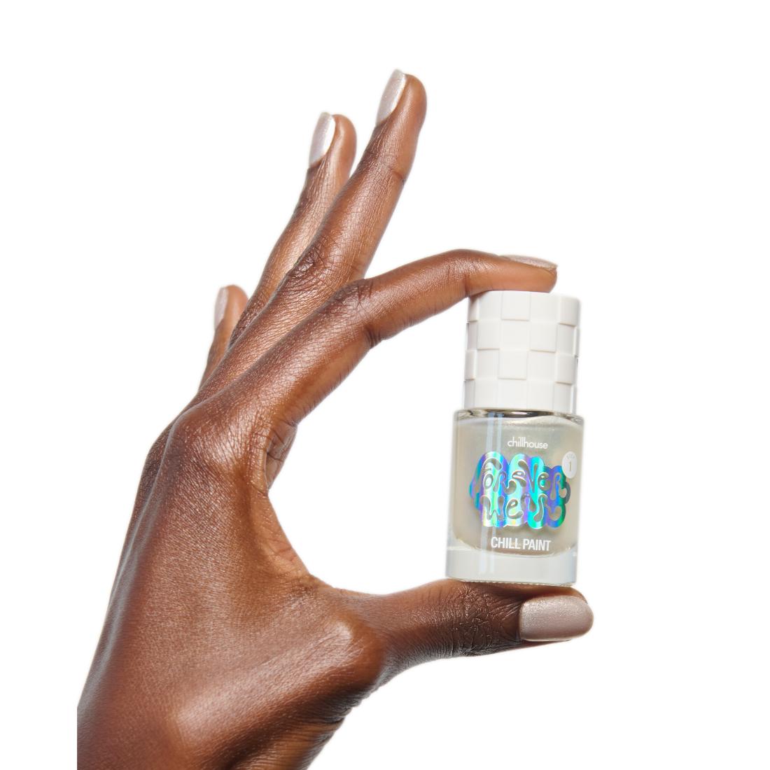 Forever Wear Chill Paint MUST be paired with our Magic Finish top coat (sold separately). They work together to activate and cure your mani ensuring a long lasting, chip resistant, and nourishing effect.