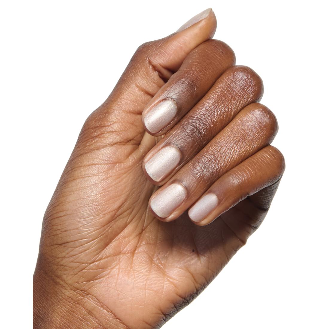 A sparkling neutral with soft golden hues that toast to effortless style.