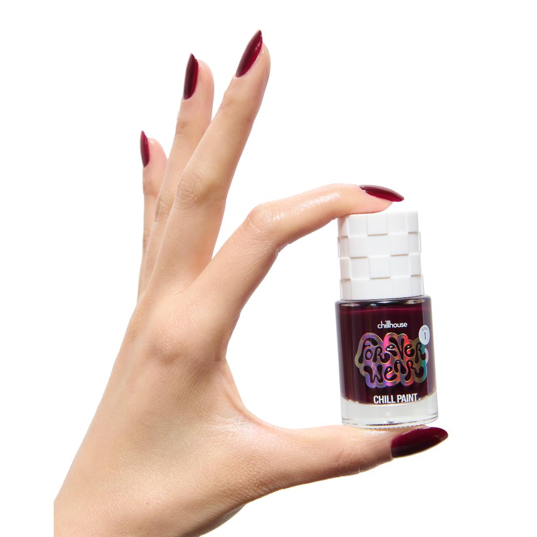 Forever Wear Chill Paint MUST be paired with our Magic Finish top coat (sold separately). They work together to activate and cure your mani ensuring a long lasting, chip resistant, and nourishing effect.
